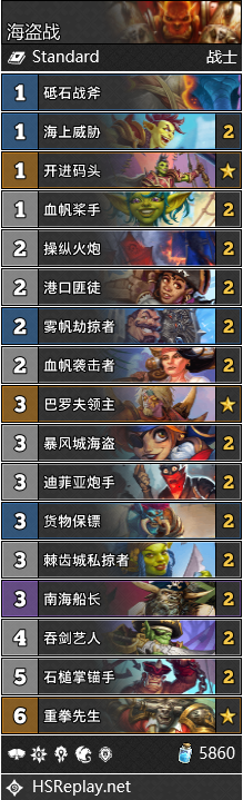 海盗战已经是过去时了。虽然他还是可以在青铜分段虐菜,但总的来说,海盗战已经不再是优质的上分卡组,甚至连“厕所战神”的头衔也已花落别家。