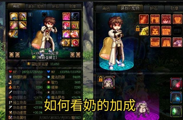 我们看到图中奶爸名望15277,体力高达8137,并且拥有光环和武器装扮以及年宠,佩戴大幽魂耳环神话,加成一定很高吧?