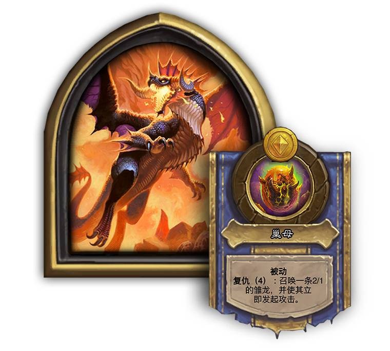被动技能,复仇(4):召唤一条2/1的雏龙,并使其立即发起攻击。