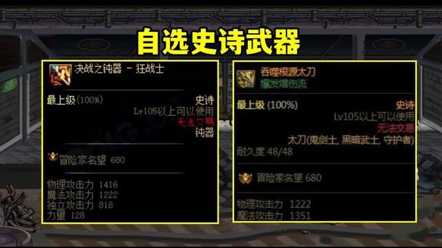 韩服魂异界送的105级史诗武器自选箱子,非常给力,打开后,可在所有的105级史诗武器中自选一件,包括105级所有的制式武器“吞噬系列”和105级的所有CP武器“决战系列”,一把105级可成长的毕业武器到手。不过有一点,105级史诗具有成长属性,需要用“100级究极装备”、“105级相同部位装备”去升级成长属性,魂异界送出的毕业武器,相当于一个升级的胚子,非常不错。