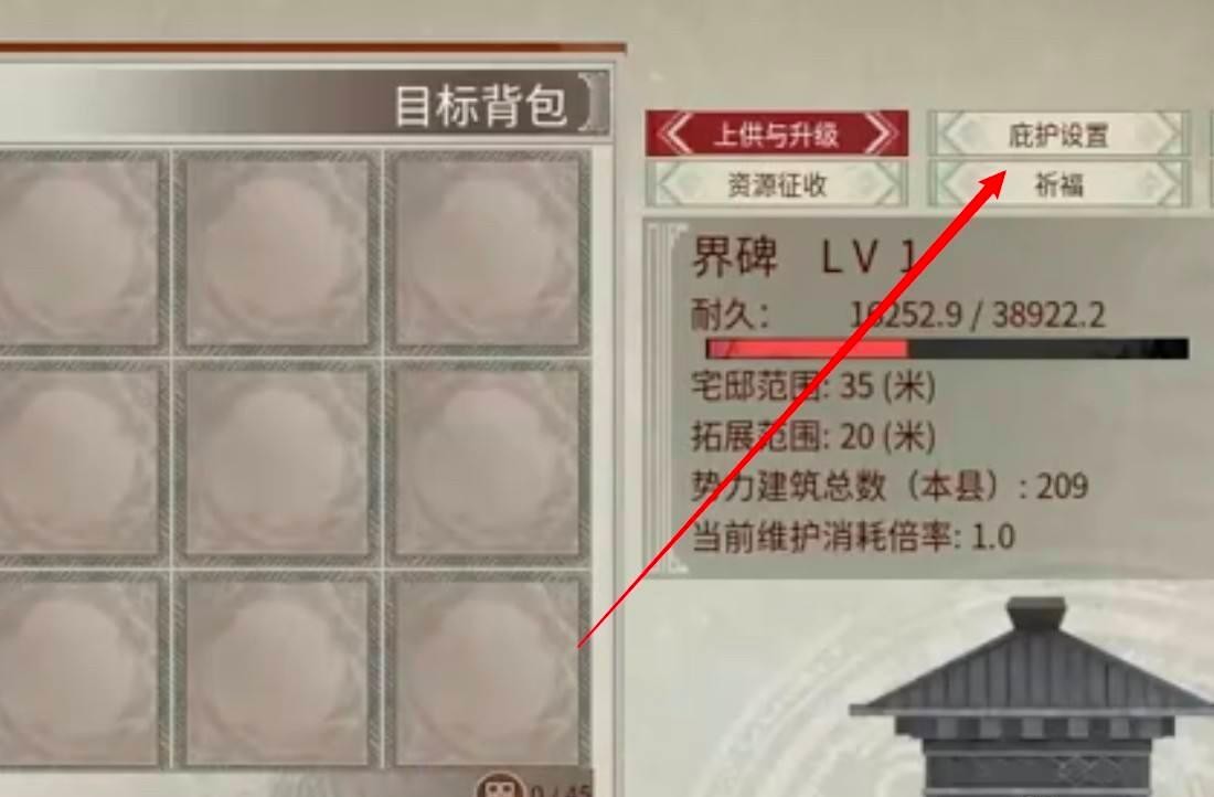 进入界碑界面,点击上方的庇护设置。