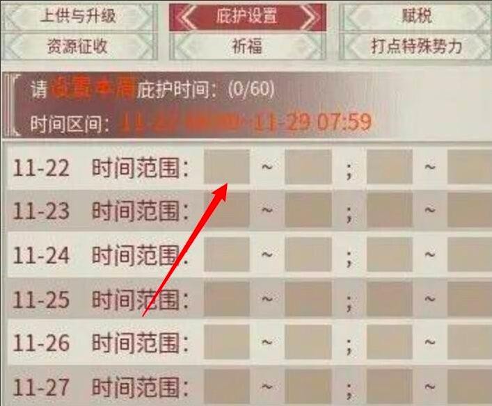 进入页面,设置庇护时间即可。