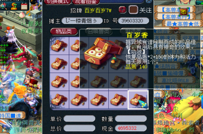 4、制作出来的百岁香的品质是随机给的,目前最高的品质140.