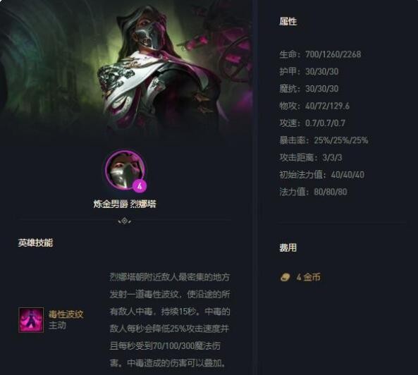 大家知道在双城的时候蚂蚱携带鬼书的效果,中期稳血能力非常高,而这套阵容也是差不多,烈娜塔自身技能就携带毒,且还是群体伤害;只要在中期有1星烈娜塔基本就可稳定升级9人口(赌狗对局多的时候,上9不够稳定)。而阵容搭配斗士羁绊,整体提升团队血量上限,这样就能给烈娜塔更多次释放技能的机会。
