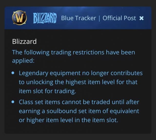 2、只有获得过相同或更高装备等级的灵魂绑定套装部位,才能交易该部位的套装。