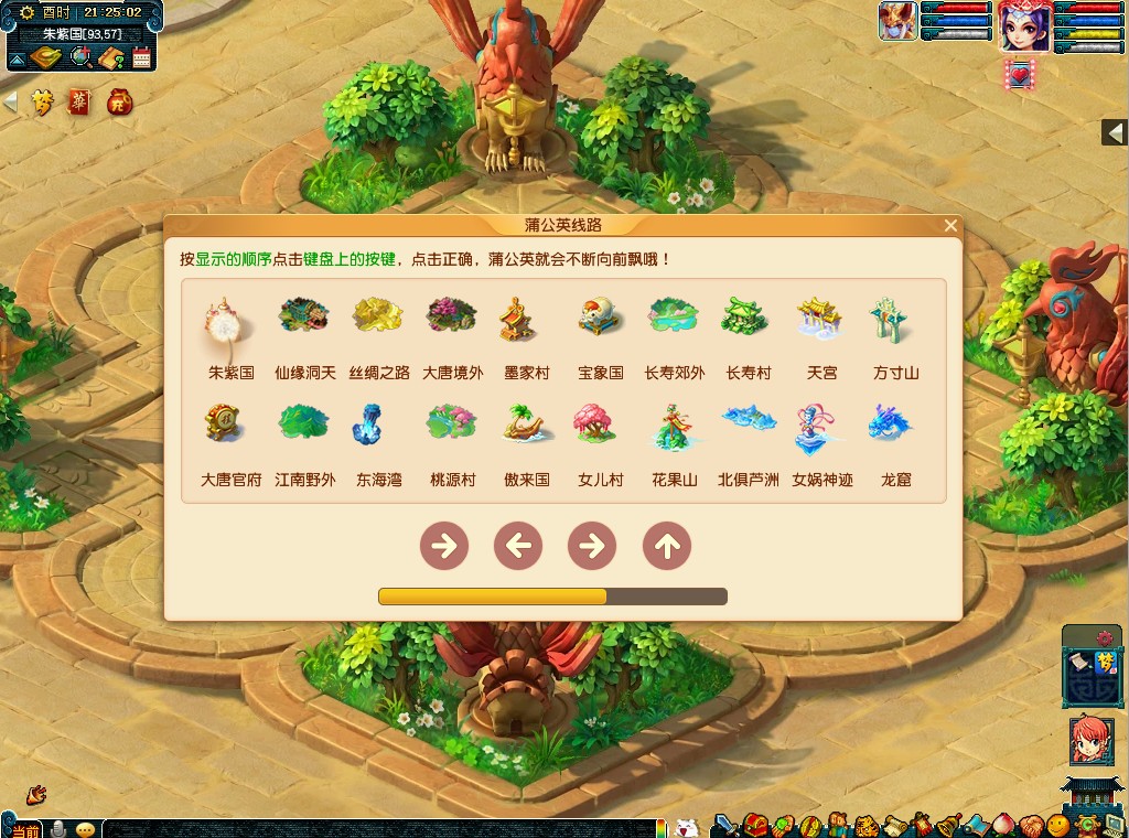 玩家可以前往长安城(231,118)神木灵仙处选择“聊赠一枝春(休闲)”领取幻灵蒲公英。每天12:00、19:00、21:00,少侠可以使用幻灵蒲公英,在傲来国、朱紫国、宝象国和西梁女国吹起幻灵蒲公英,让这些种子飞遍天涯海角!(持续时间1小时)蒲公英洒遍三界,还将为少侠带来金钱奖励!