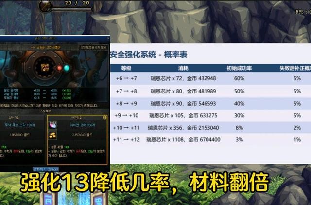 注意看,+11-+12消耗1108碎片和670万金币,这个额度未免也太大了,成功率仅有3%,补成功率1%。