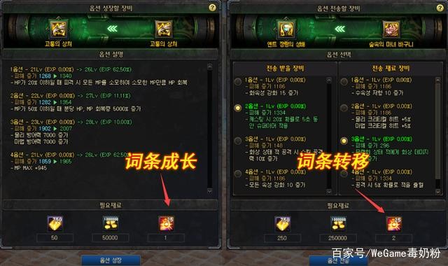 【3、词条继承】每次消耗500个金石头、50W金币,5个灵魂之源。可将A装备的词条等级,转移给B装备,不损失经验值,相当于打造继承的词条版。