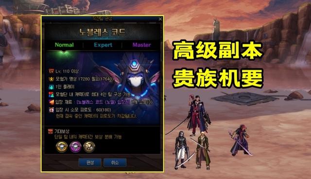 110级共有两张高级地图,“贵族机要”和“亡灵城堡”,难度包括“普通、冒险、勇士、王者”四类,进入需要消耗疲劳值和门票,门票可用引导石(480/960个)兑换,也可以拍卖购买,还可以对应副本掉落、也能刷图点系统兑换,高难度门票可进低难度,但低难度门票不能进高难度,每天或者每周不限制挑战次数,只要你有门票,有疲劳值,就可以随时挑战。