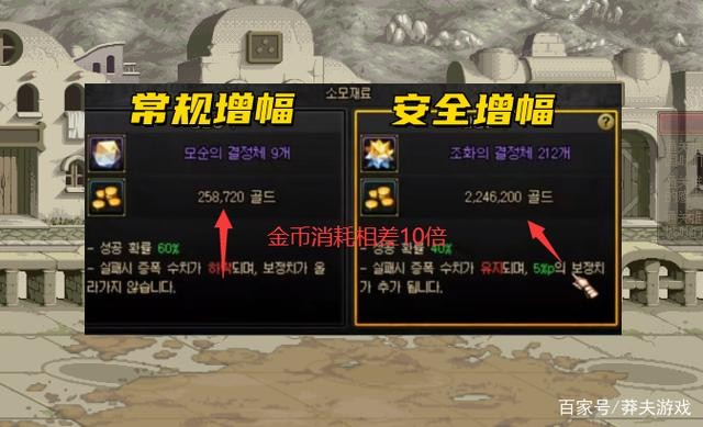 5、不管是“安全强化”,还是“安全增幅”,其操作成本,都远大于正常强化和增幅,这也很好理解,毕竟你失败不掉级,肯定需要花费更多成本才对。