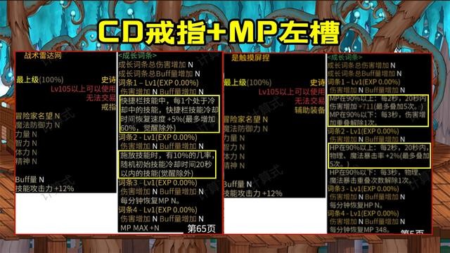 戒指部位选“CD”,基础属性技能攻击力12%,成长属性方面,“5%-60%的CD恢复增加;释放技能时10%几率重置20秒内CD非觉醒技能”,续航CD最强装备,甚至可以和“时间神话”搭配使用。