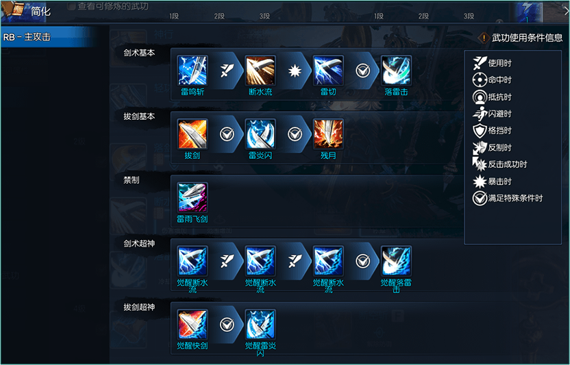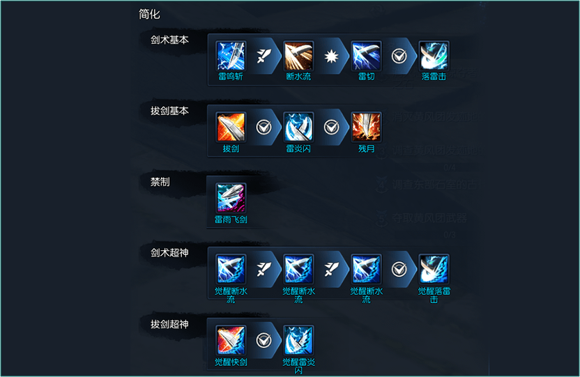 在技能简化页中可以看到技能被简化成了鼠标左右键、TAB键、1、2、3、4键几种组合。