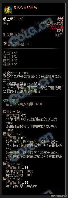 其次是耳环,属性1:登录在技能槽的技能使用指令发动时这个技能攻击力+20%。