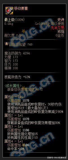 伤害增加必备MP装备,移动要塞 戒指--因为要吃药才能伤害最大化,团本限制吃药,有待考虑。