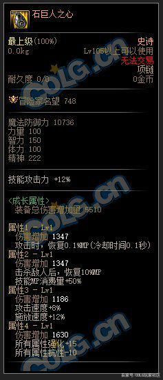 石巨人之心 项链不建议带,因为一直回复MP,导致MP很难达成上面60%以下、20%以下伤害最大化。