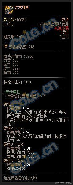 这里可能有人会说为什么不用”执念未解的怨念 上衣“--hp归零+4446伤害增加量10秒狂暴,个人觉得这件上衣没什么太大用。首先,没人会进副本刻意去送死,且输出时间仅10S,其次,在不死亡的情况下,伤害量加成太低了,最后,团本一般都会限制复活币使用量,没有那么多复活币让你狂暴。