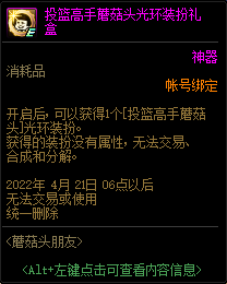 DNF投篮高手蘑菇头光环装扮礼盒能开出什么