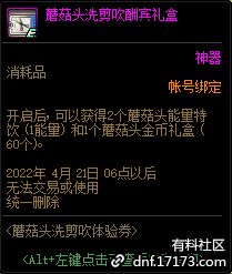 DNF蘑菇头洗剪吹酬宾礼盒能开出什么
