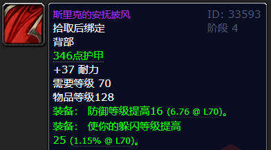 包括防御披风和物理精准项链,特别是项链,将成为防战和熊T的bis装备,补足最缺的精准属性。