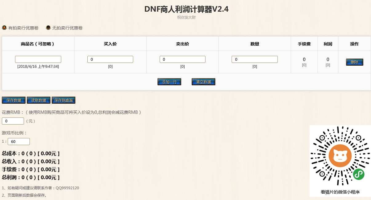 2、增加保存读取功能。(方便网吧用户保存囤货记录)。