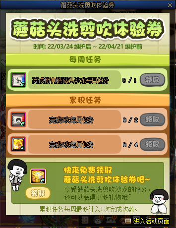DNF蘑菇头洗剪吹体验券奖励汇总