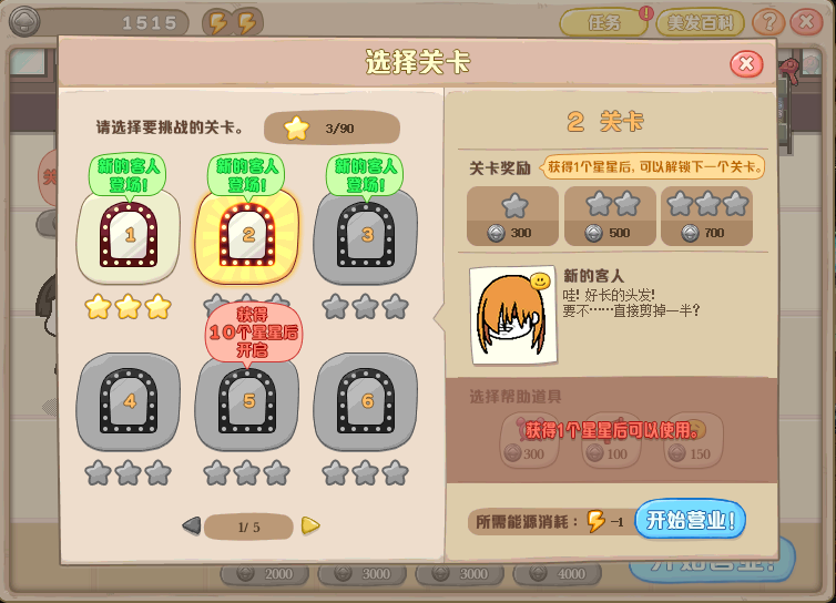 每隔一段时间会出现客人,使用他想要的工具进行理发即可(顺序是从左往右)