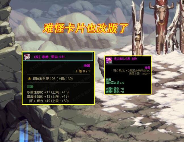 这也解释了110级卡片也有二次改版,因为原来武器附魔是50点四维的卡片,与属抗数值同时得到了调整,变为了“+15双属强”,不然你想走双属强有多难?拍卖行目前只有2种+15双属强的卡片,仅从“冥域时空”产出,因为产量极低的原因,所以价格高达几千万一张!