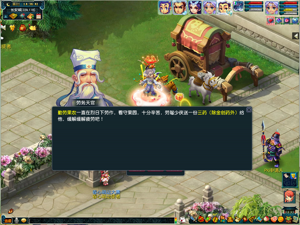 2、任务时限40分钟,可以在长安城(233,115)劳务天官处取消任务,取消任务3分钟内不能再次领取任务;