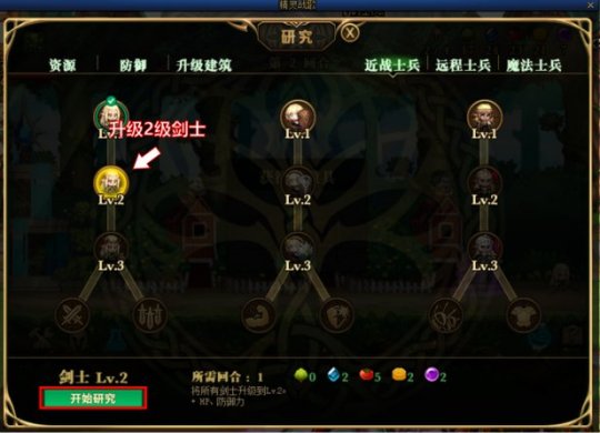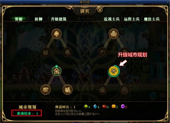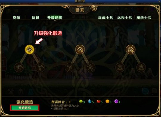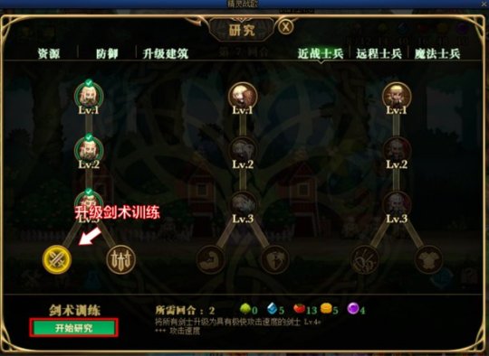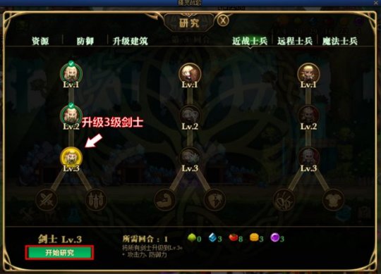 从这个回合开始所有的需要研究全部解锁,所需基础建筑数量全部达标,剩下需要做的只有补兵、插铁匠铺,本回合将左右边剑士各补到7个、铁匠铺补到总计5座。就可以结束了。
