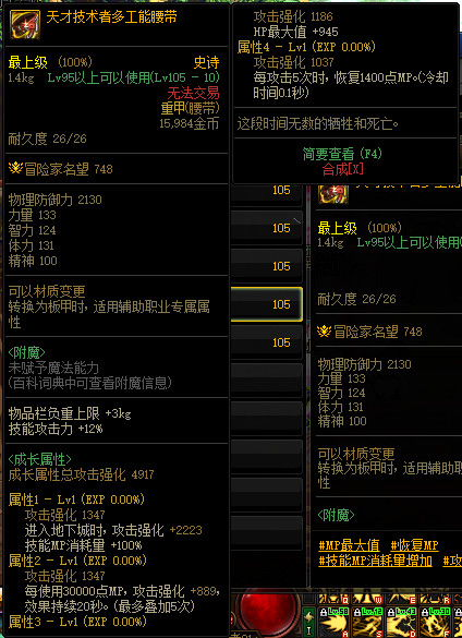 110版本删除了套装属性,除了技能攻击力之外的伤害词条也被取消。105级史诗装备只存在技能攻击力以及攻击强化两个词条。(原来的装备词条并未整合,只是新装备无其他词条)