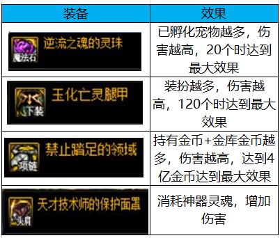 这类装备可以提供不俗的伤害加成,而且也不需要玩家的“操作乘区”,此类装备一共有四件: