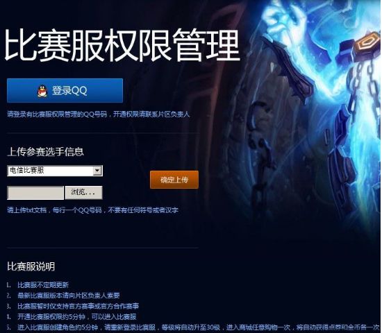注:比赛服功能不同于现网版本,只能发起自定义赛事,默认可使用所有英雄,是专用于比赛的服务器。此服务器不面向大众开放,只有开通了比赛服权限的账号才可登陆,且每周一会清理所有登陆权限,没有赛事需求的用户请勿下载!