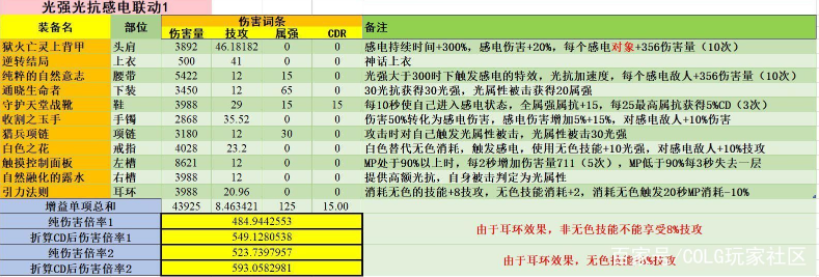 第二套则是放弃右槽带来的光抗和生存能力,选择粗暴的氪金右槽,进一步提升了伤害倍率和续航能力