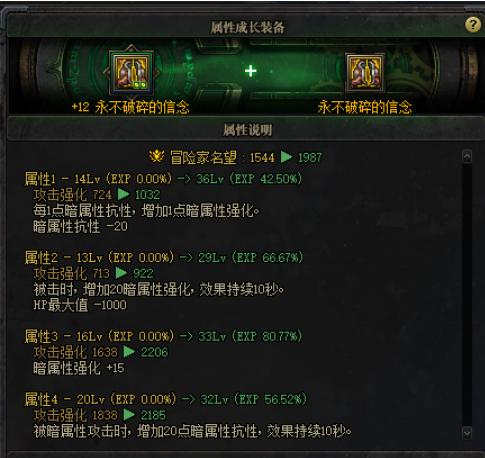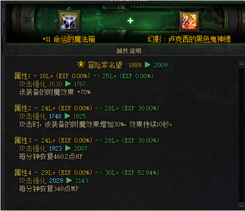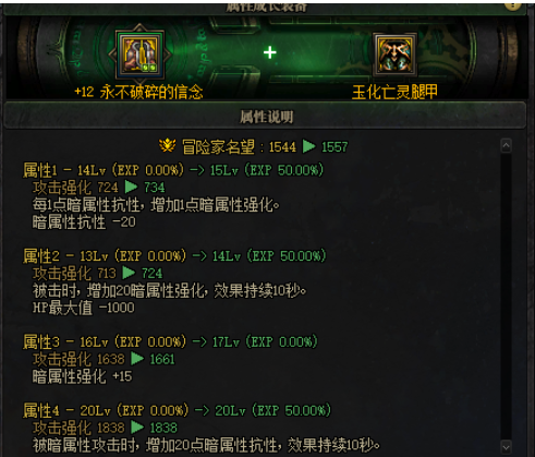 并且,至多只能提升1级各属性词条,大成功时则至多2级。