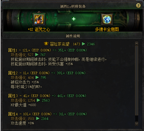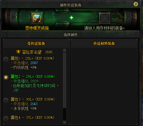 顾名思义,将指定装备的属性等级,100%无损转移至同部位其它105装备。