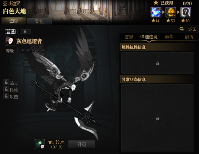 刷图时击败怪物会有一定几率掉落怪物的碎片,碎片分为五个星级,使用一定数量的碎片可以对图鉴进行升级。等级最高五级,随着等级的提升会解锁怪物的信息、详细信息、剧情等模块。