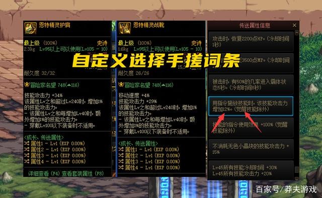 “腰带”应尽之责腰带,手搓核心部位之二,每空1个技能栏,增加2%技攻,最多可叠加14%;“鞋子”恩特精灵鞋,手搓核心部位之三,这是一件自定义装备,可以选择手搓属性,每空1个技能栏+2%技攻,最多可增加12%;