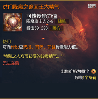 洪门降魔之诡面王大精气是剑灵诡面梨园版本中比较高级的一种道具,主要用来强化戒指、耳环、项链。那么游戏里洪门降魔之诡面王大精气怎么获得?属性如何?小编今天就将带来剑灵洪门降魔之诡面王大精气介绍,希望大家喜欢。