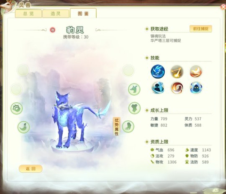 本次小编给大家带来的是灵山奇缘灵兽豹灵介绍,灵山奇缘灵兽豹灵怎么样?豹灵的资质如何?豹灵要怎么培养?豹灵哪里捕捉?下面是小编为大家收集了豹灵灵兽资料!希望能帮助到大家!