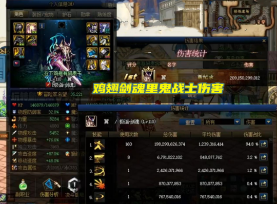 从“伤害统计”分析,全程打桩里鬼放了160个,伤害占比94.8%,续航能力卓越。难怪很多剑魂玩家,都追求基础流派,里鬼战士的伤害,的确比较出众。