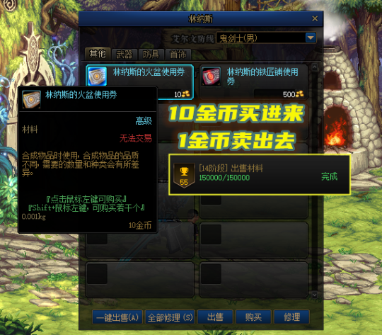 在林纳斯铁匠商店,存在“火盆使用券”,只要10金币就行,卖出去还能回本1金币。这样算下来,等于只要9金币,确实比无尽永恒和诞生之芽实惠!