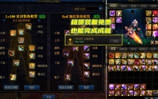 但存在免费途径!“从100开始的全新冒险”,玩家可租赁装备, 涵盖史诗装备和Buff强化装备,一次能24件,直接丢商店卖掉。