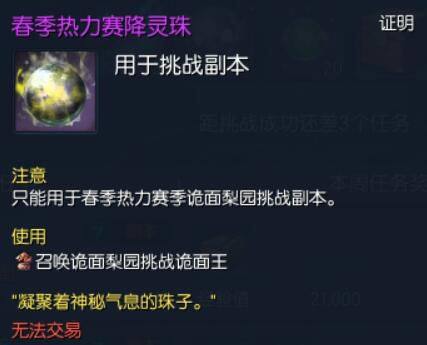 春季热力赛降灵珠(完成每周挑战后可获得该奖励):