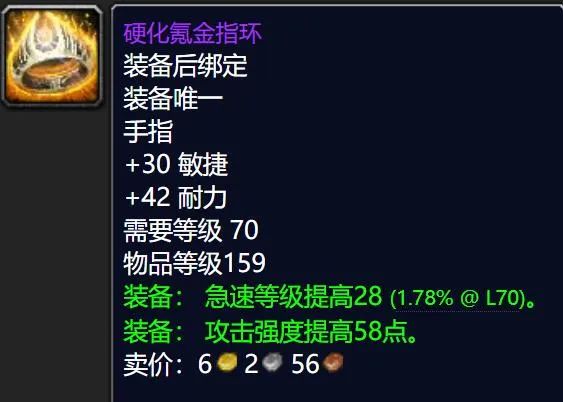 戒指选择实在太多了,高装等的有硬化氪金戒指、海山声望戒指、黑庙小怪戒指入手难度都不高,低端的卡拉赞声望戒指、贫民窟声望戒指、玛瑟里顿任务戒指也都可以用。
