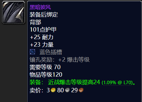 披风用黑暗披风,材料便宜属性给力。