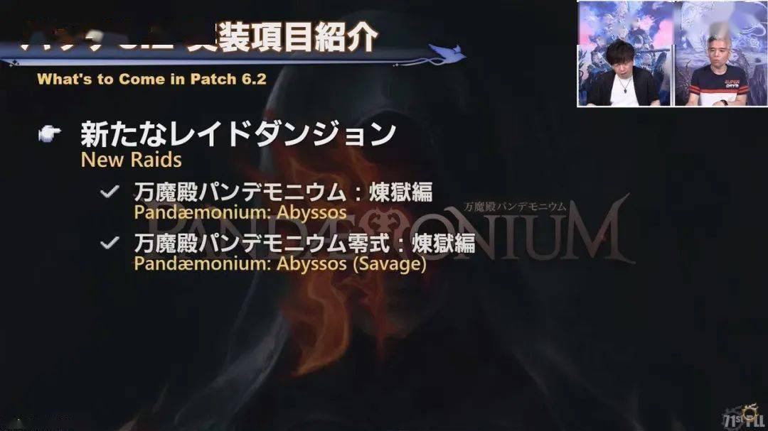 -新高难度副本系列编年史任务:万魔殿 炼狱篇,高难度的零式会在 6.2 更新后一周开放,制作人希望战斗玩家们能先享受剧情再冲,未来在 6.4 版本时零式的开放时间会依据这次玩家的反应决定,而这次零式可能有《FF》历代角色登场,敬请期待。