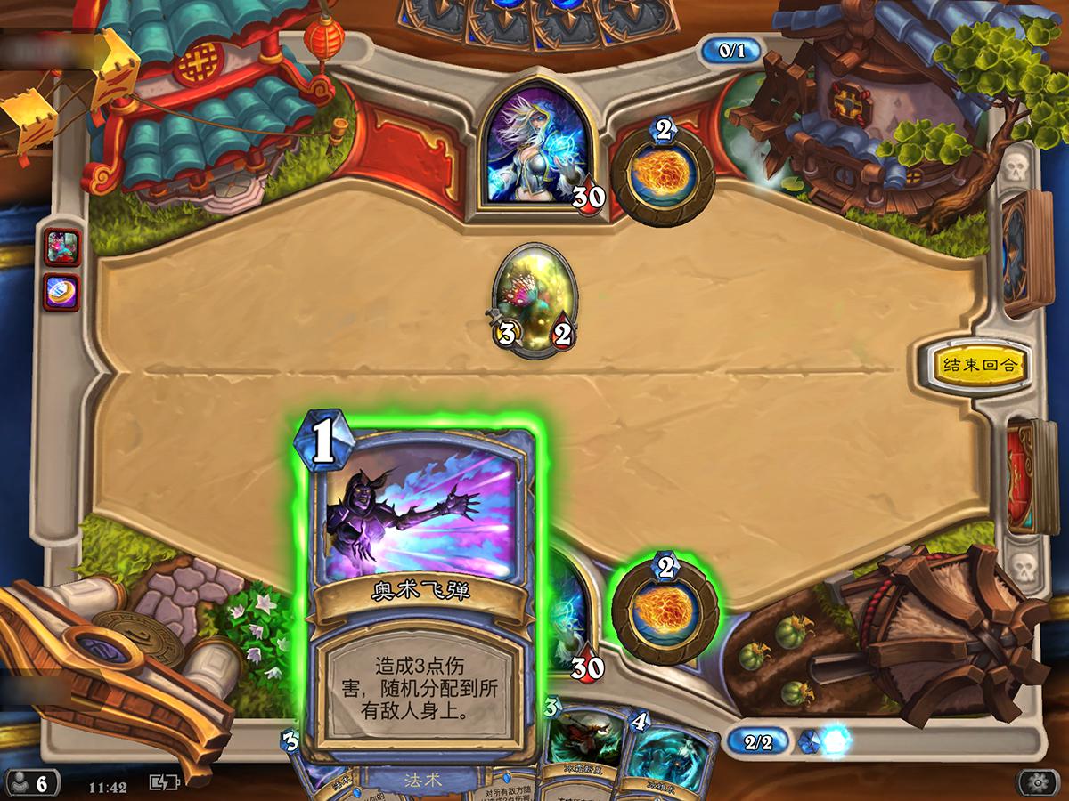 普通的奥术飞弹打死对手唯一随从精灵龙(3/2)概率是1/2。