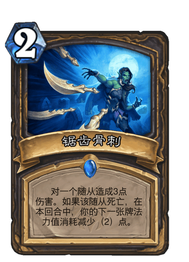炉石传说的全新版本23.6正式的上线,本次的版本命名为:纳斯利亚堡的悬案,推出了很多全新的卡牌,锯齿骨刺就是其中一张,那么下面就为大家带来了这张牌的介绍.