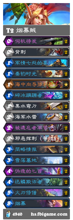炉石传说2022烟幕贼卡组怎么玩很多玩家不知道,炉石目前版本是吸血鬼主题的版本,烟幕贼现在的环境很一般,小版本王子的上线使得天梯格局一下子发生了巨变,并且40血卡组的存在对于烟贼这种靠直伤作为主要获胜手段的卡组来说非常不友好。下面就来看看2022烟幕贼卡组攻略介绍。