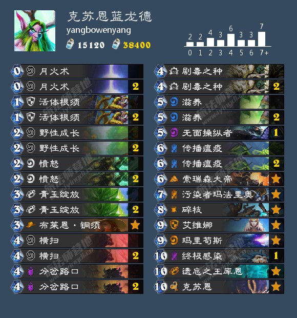 克德被蓝龙德全面淘汰的理由在于触手机关枪无法击穿术士939传播二王的铜墙铁壁。这套牌也不能,而且有个隐患就是打出克苏恩52伤害需要足足7个随从位置,少一个都不行。对于场面不太干净经常有甲虫剩下来的对局是致命的。如果我们发现对手蓄势待发养女王、939、948等克苏恩毕生大敌,我们依然只有华山一条路。在这种对局里,克苏恩和铜须可以直接卖。啊对了,说到铜须,这套牌拢共也就两个战吼铜须的表现可能还不如詹姆斯,但对手不知道啊。一张能在4回合给挂机的狗蛋巨大困扰的裂地民兵,你值得拥有。(反正碎枝单蓝龙基本够了)